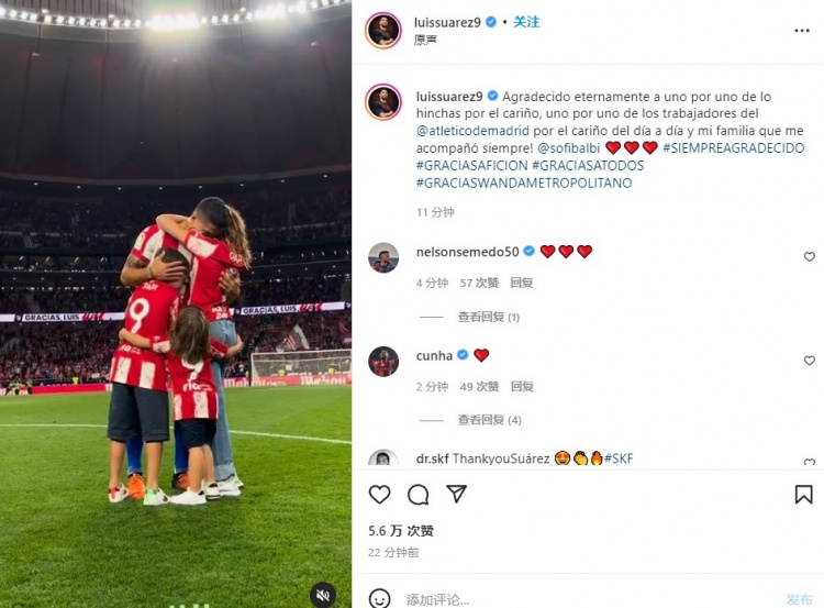 他也在赛后发文表示:“我永远感谢球迷们对于我的喜爱,感谢马竞工作人员们日复一日的辛劳,也感谢始终陪伴着我的家人。”