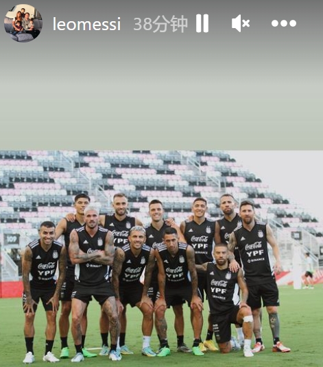 足球导航网9月23日讯 梅西在个人社媒晒照,他和所在小队的阿根廷队友合照。